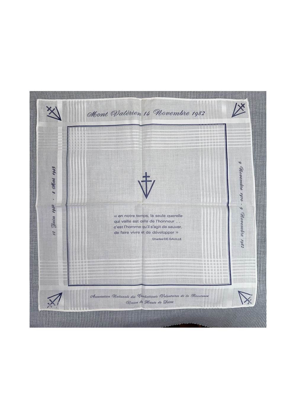 Mont Valérien, 14 Novembre 1982 : Lieu et date de la commémoration officielle associée à ce mouchoir.