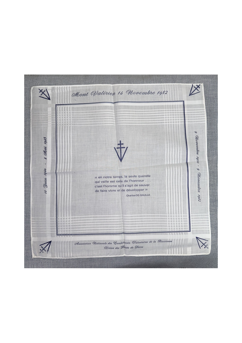 Objet Rare : Ces mouchoirs étaient souvent édités en tirage limité pour les membres d'associations ou lors de commémorations spécifiques au Mont Valérien.