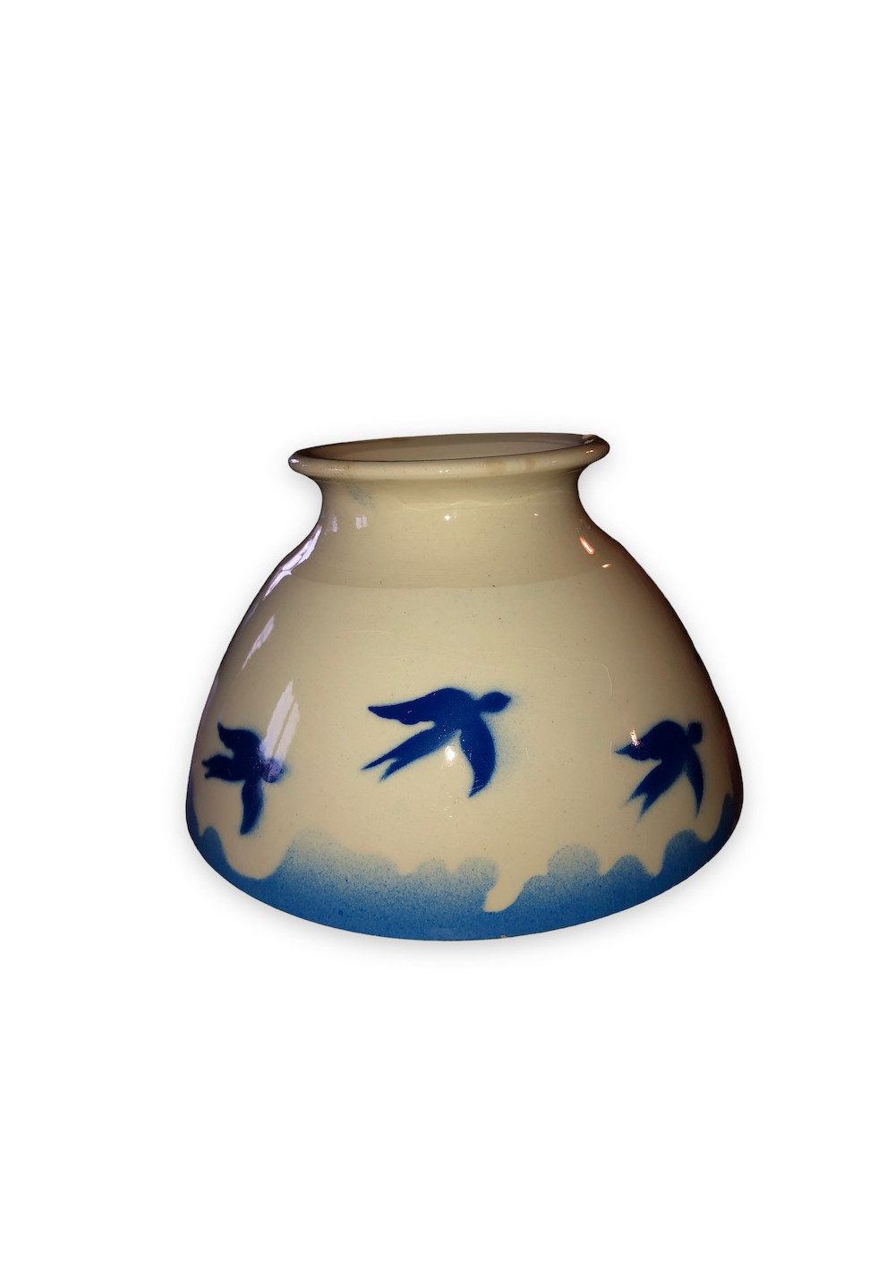 Old bowl with Badonviller blue swallows