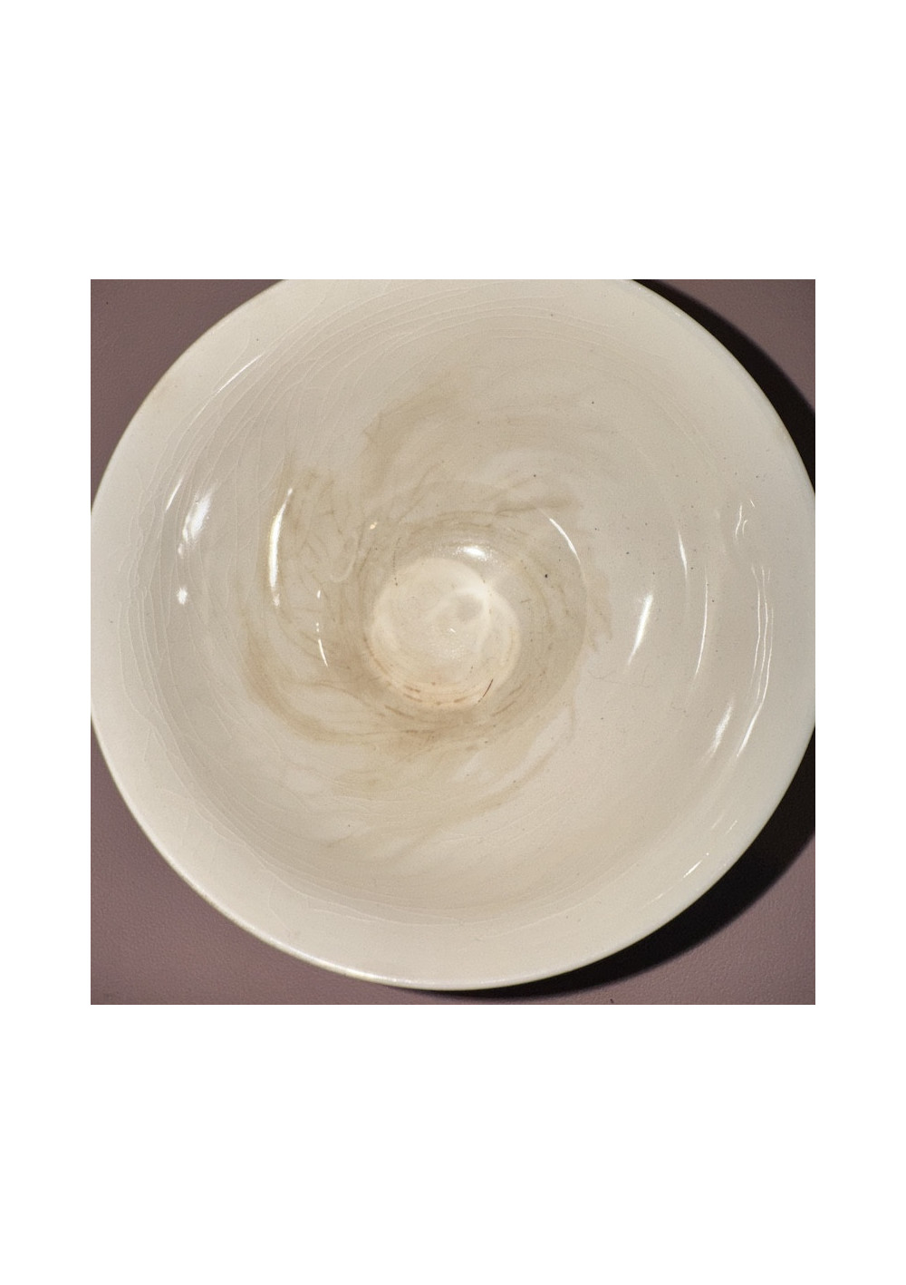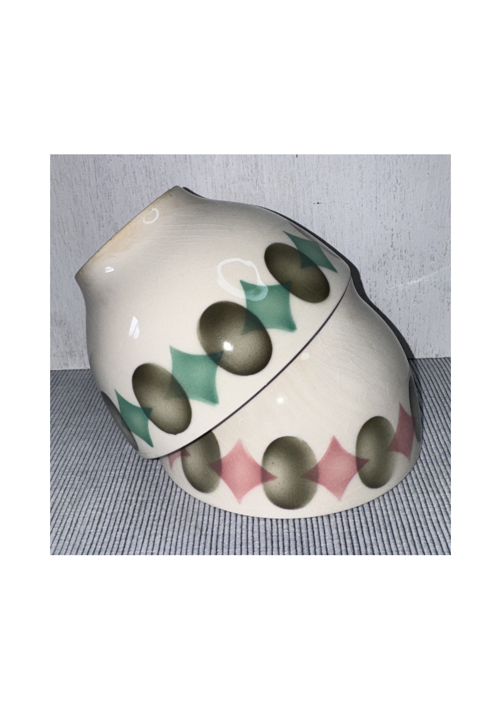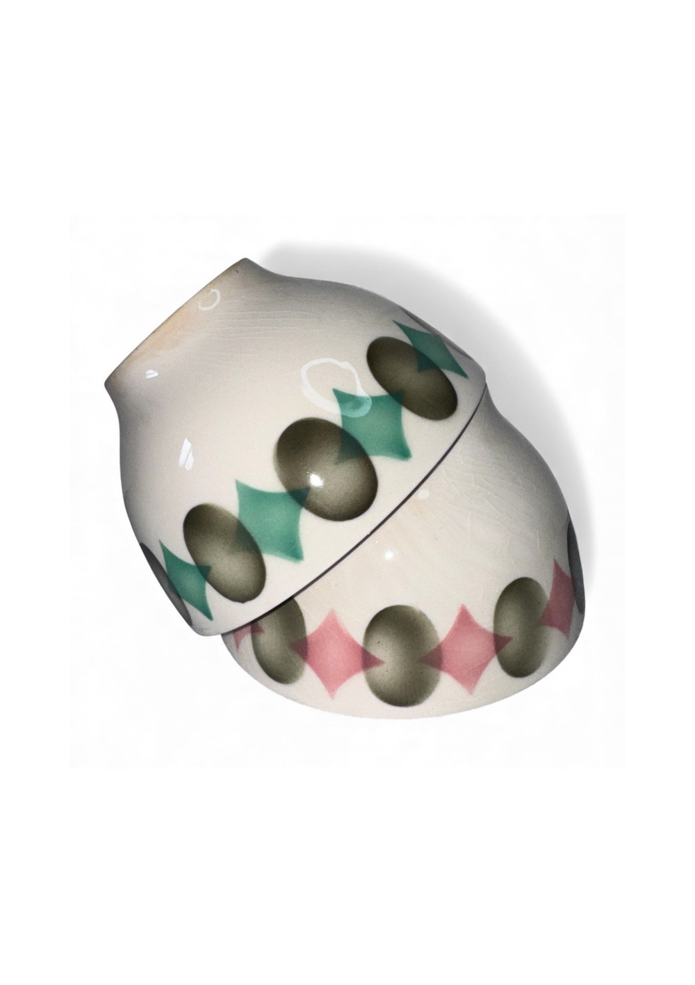 Antique faceted bowl, decorated with peach or apple on a white background. Ideal as a decorative piece or to complete a collection.