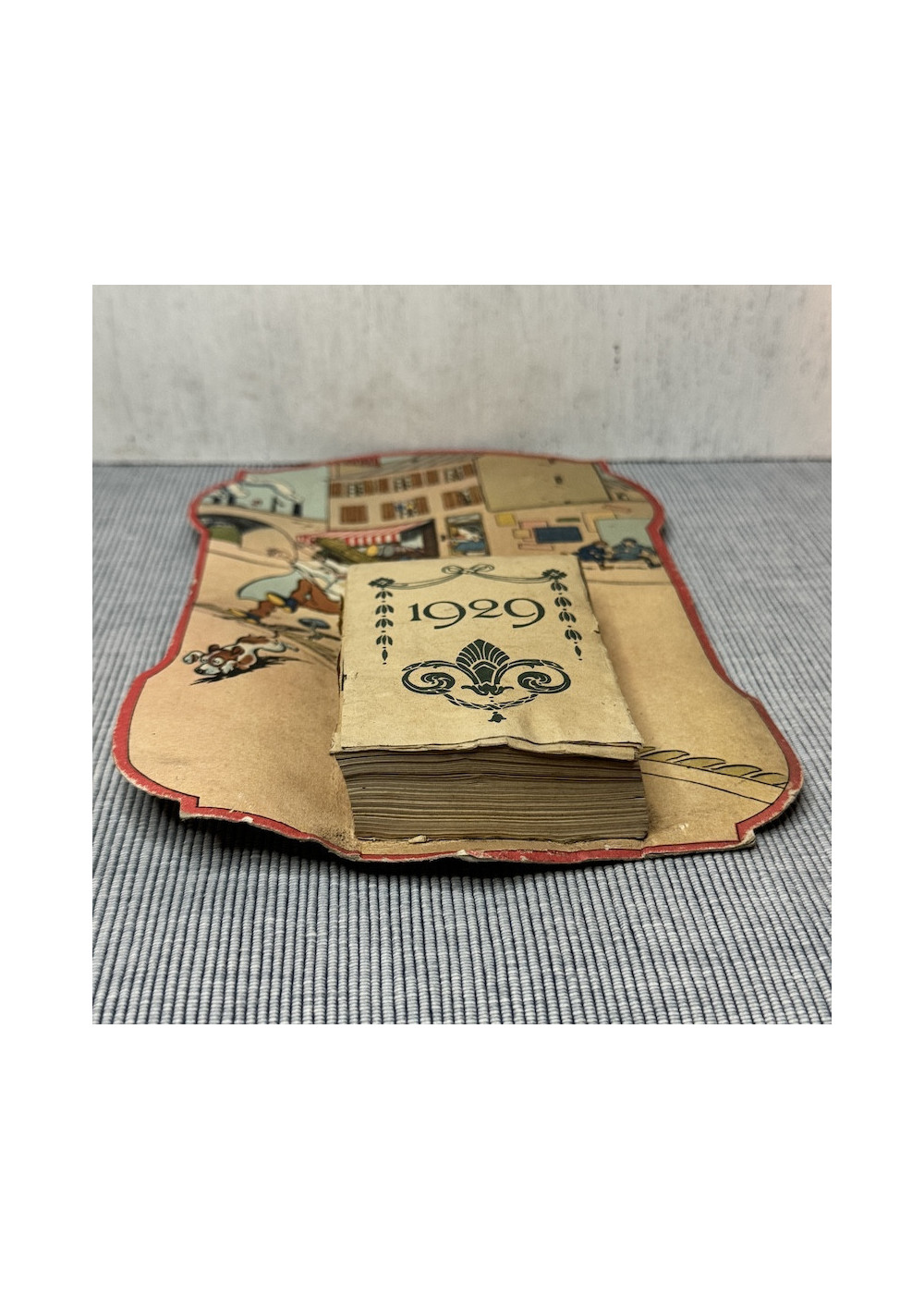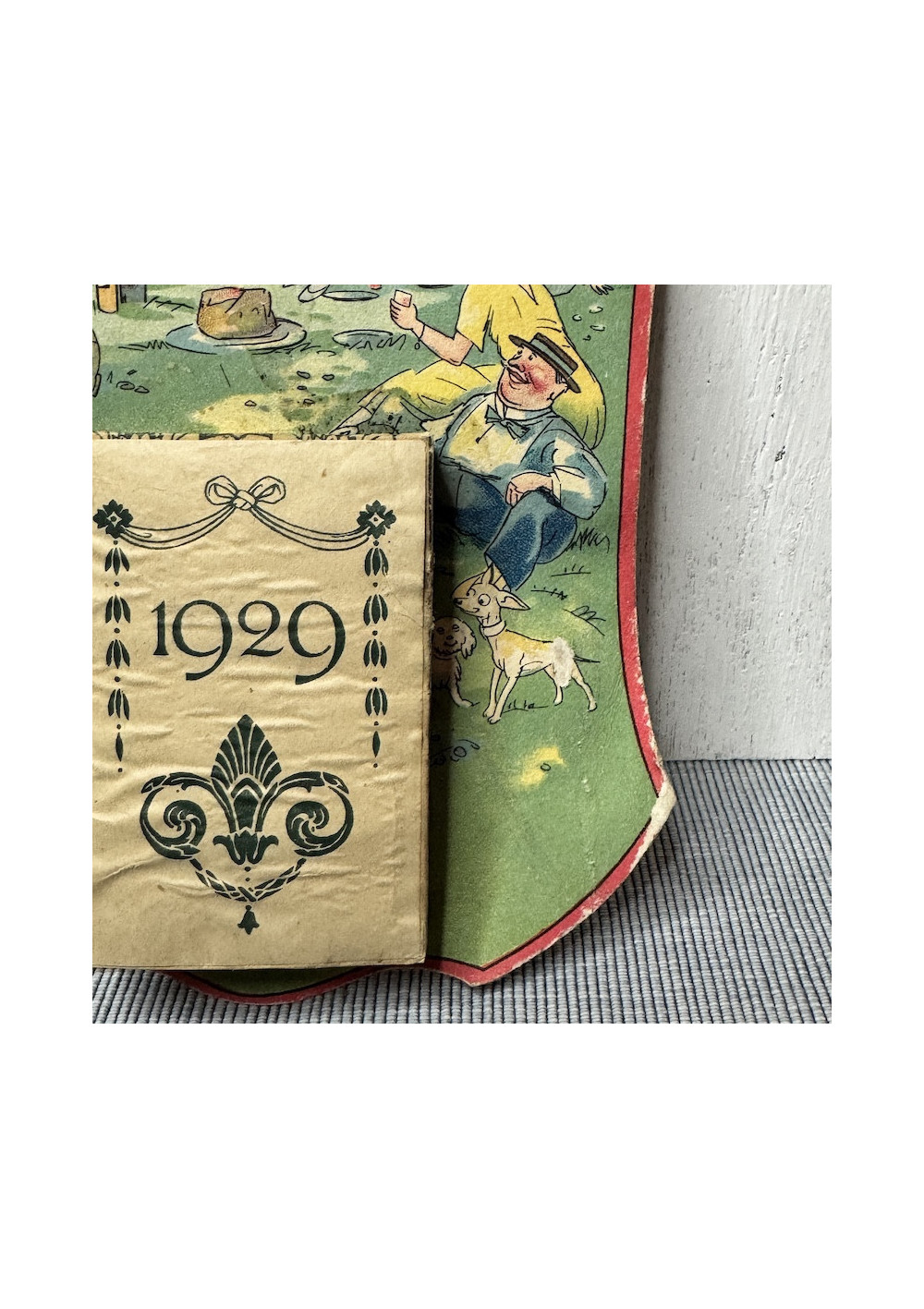 Drolatique 1929 wall calendar, never used; an authentic and rare collector's item, with a patina of age.