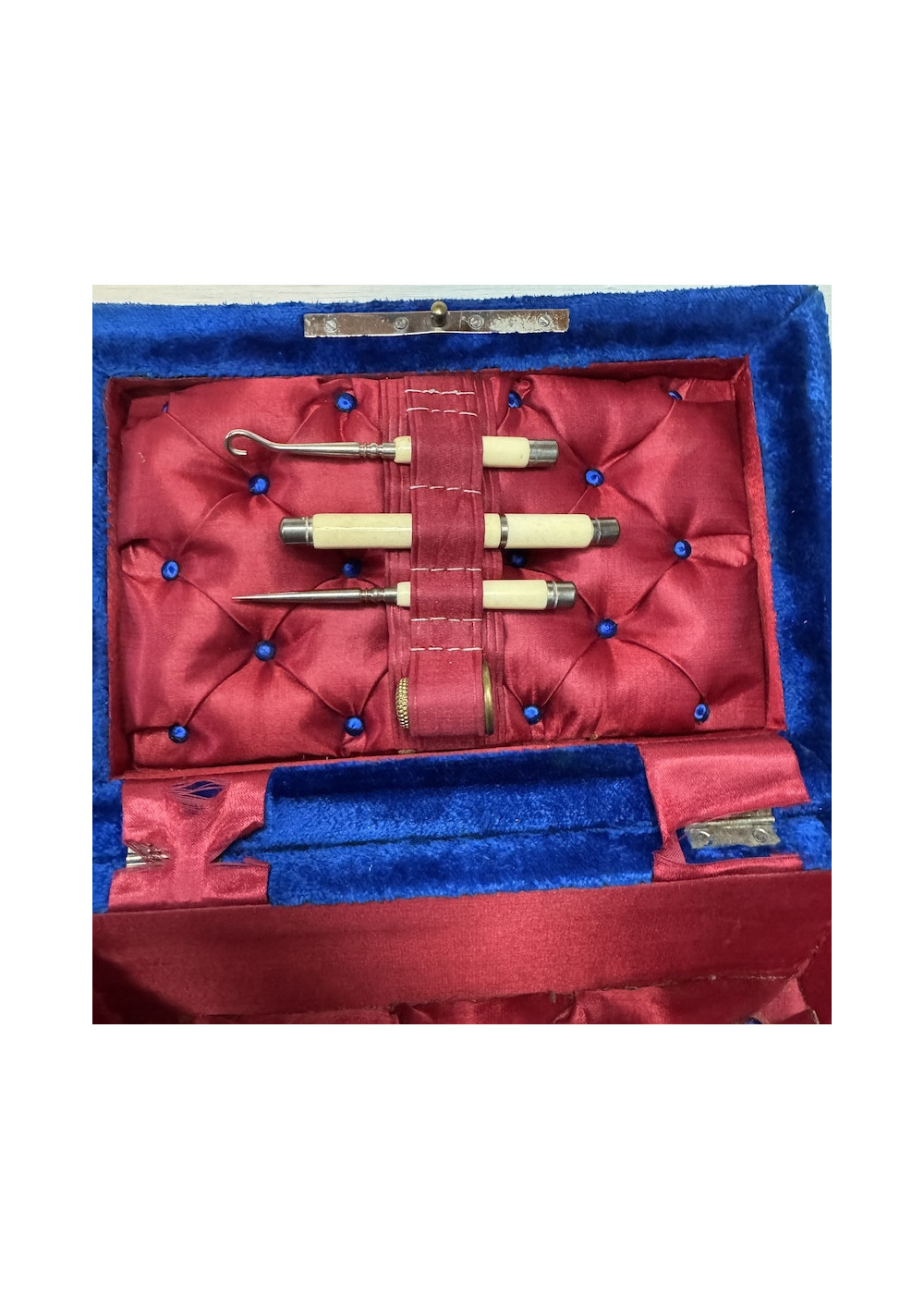 Antique lithographed tin lunch box with an enchanted forest design. Ideal for vintage decor, collecting, or charming childlike storage.