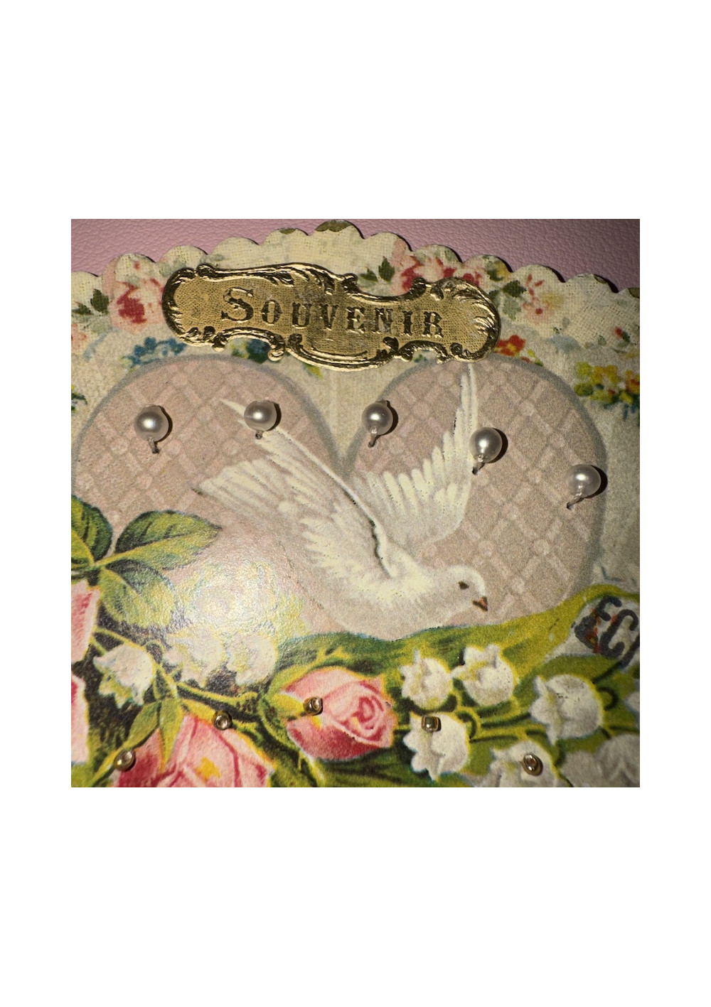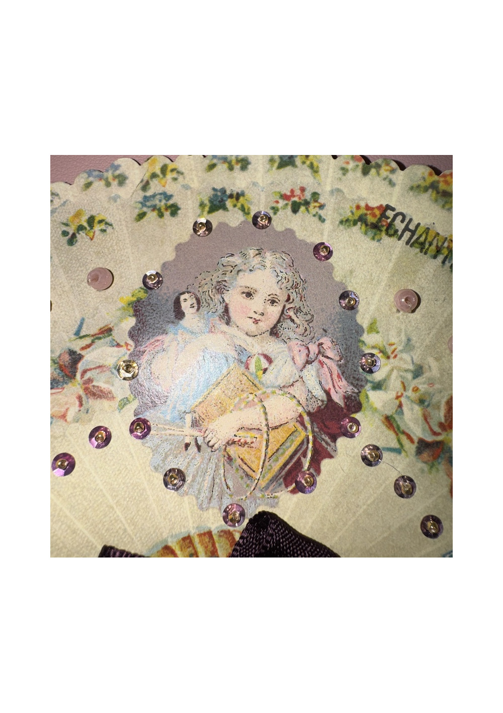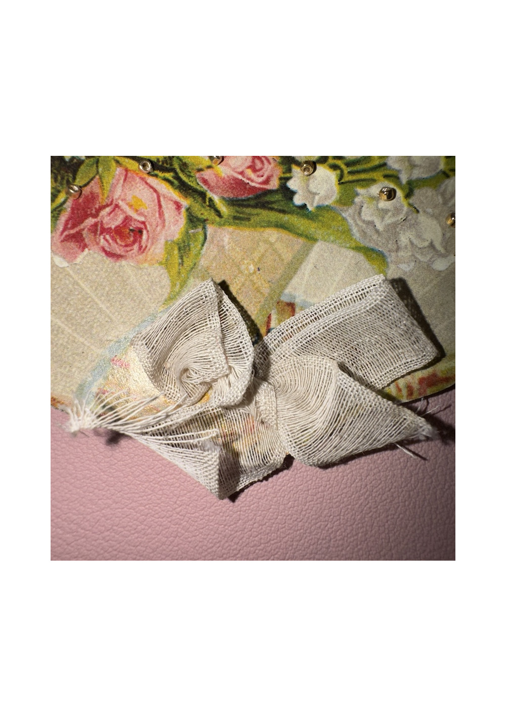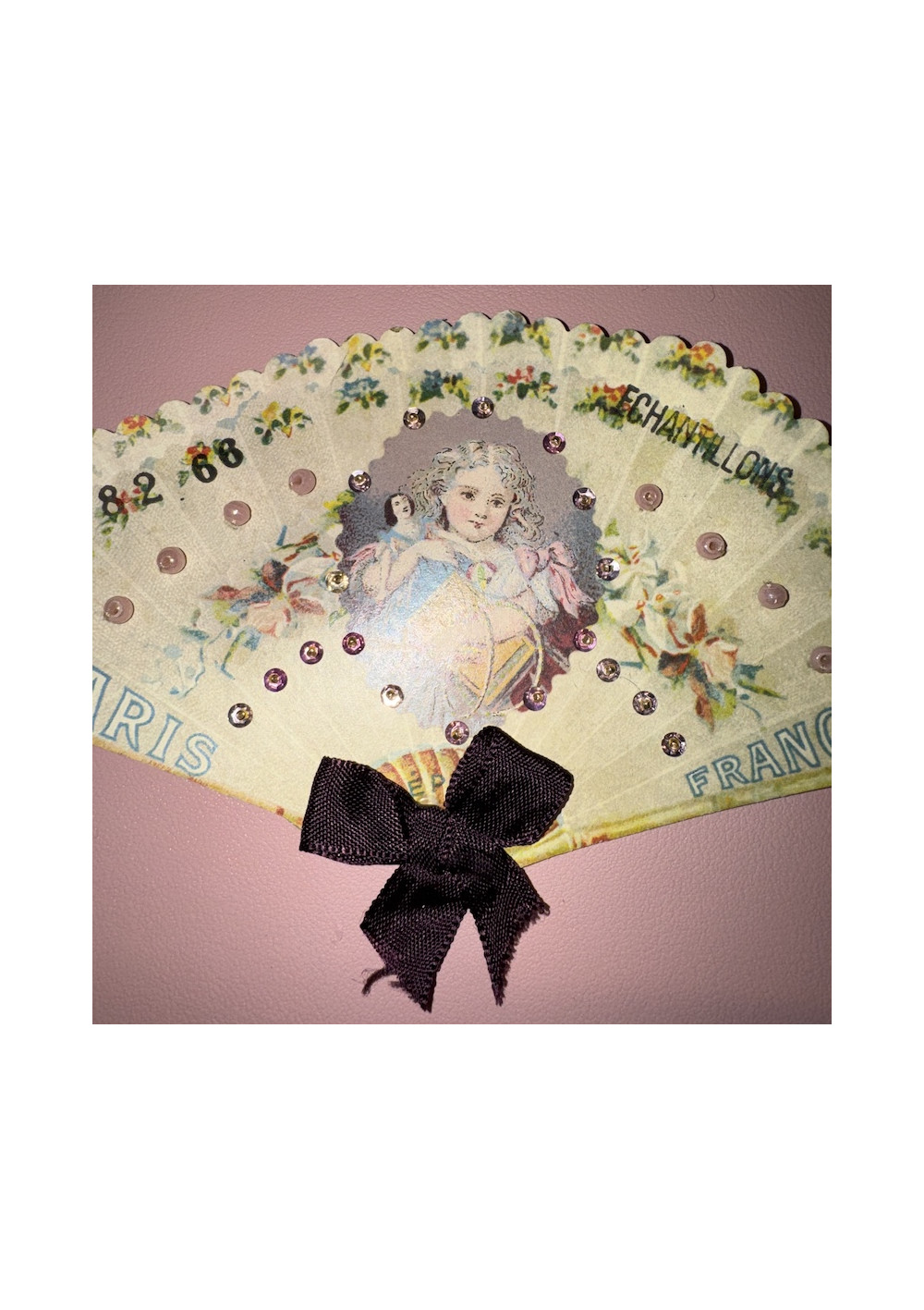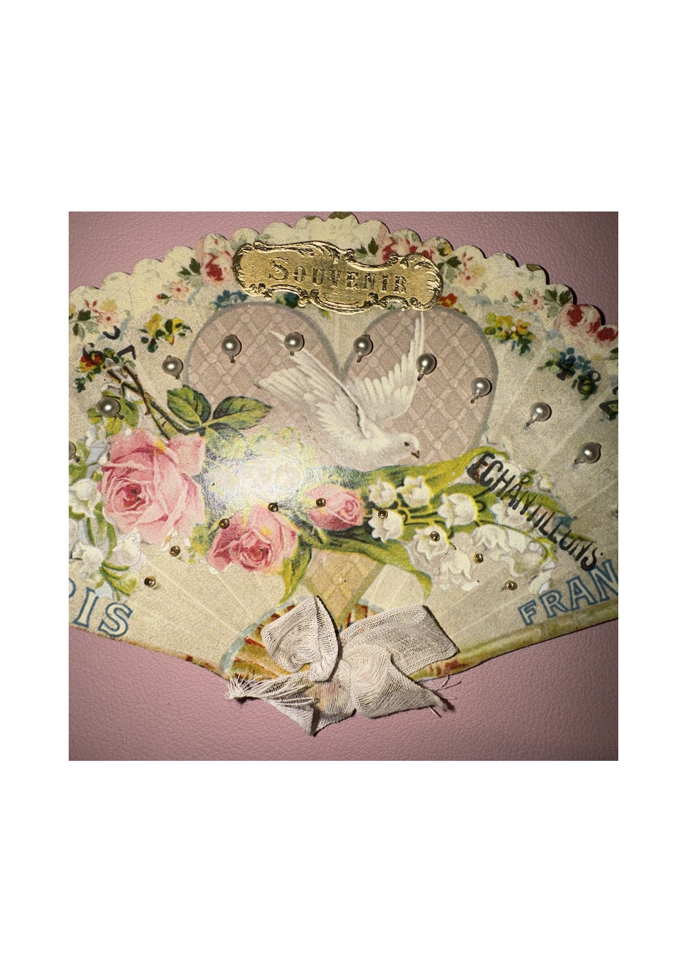 Multicolored floral bead sampler, cardboard. Good condition, shabby chic style. Pre-owned item found in Paris, perfect for DIY, decor, and vintage storage.