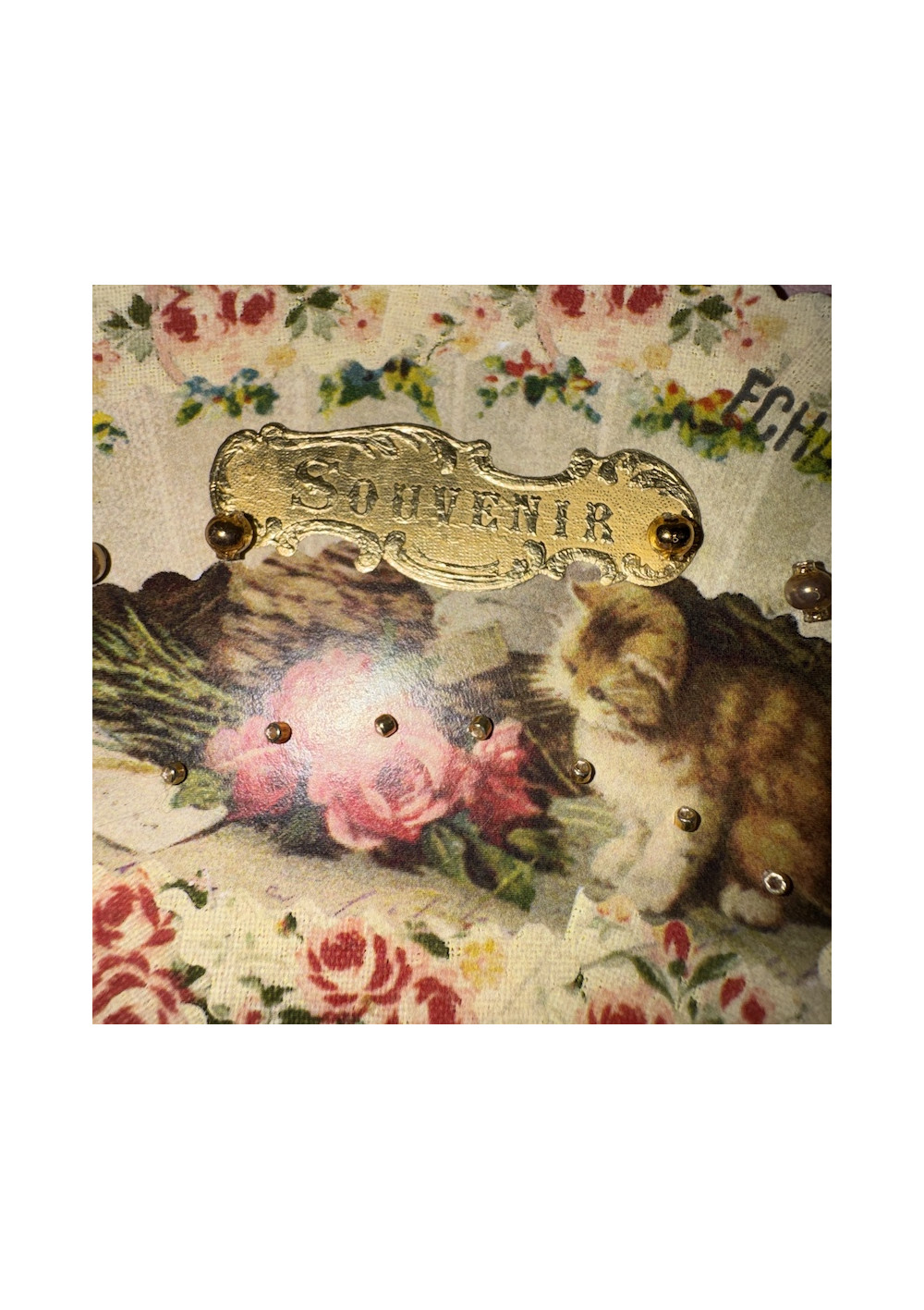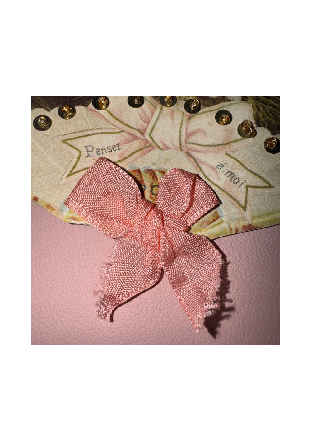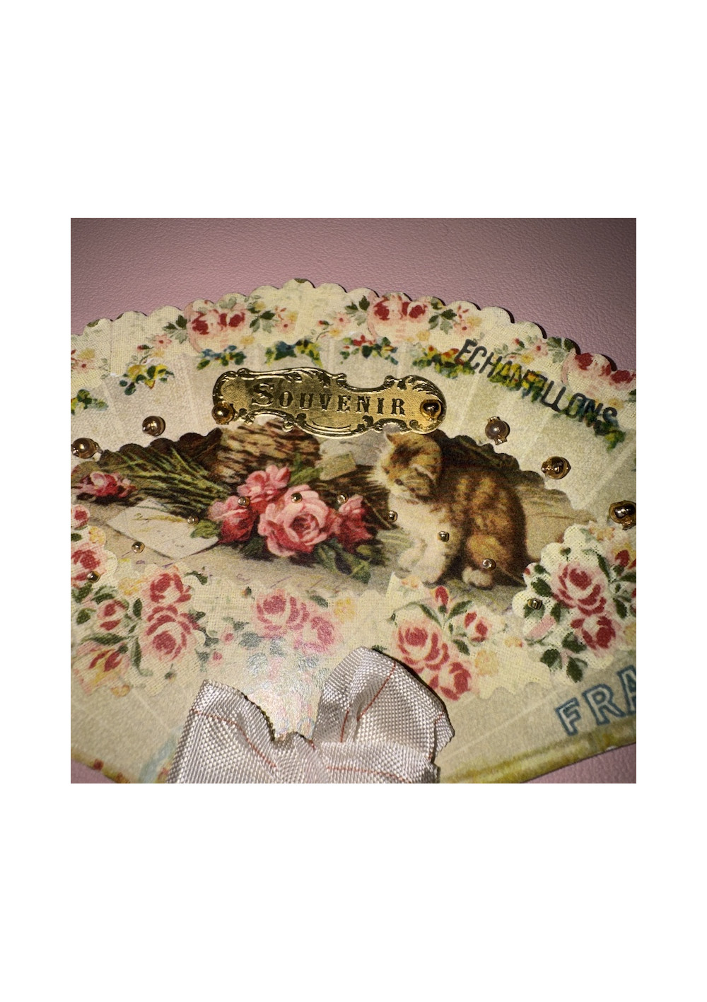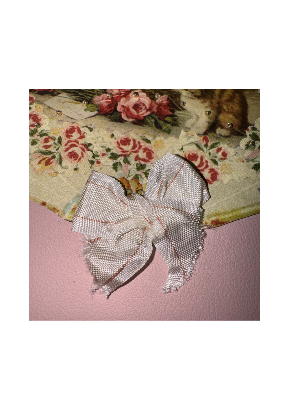 Multicolored floral bead sampler, cardboard. Good condition, shabby chic style. Pre-owned item found in Paris, perfect for DIY, decor, and vintage storage.