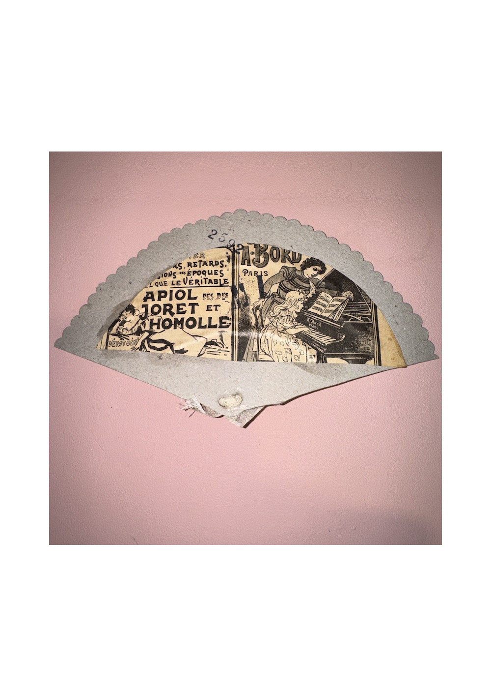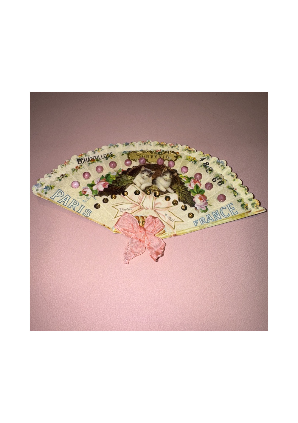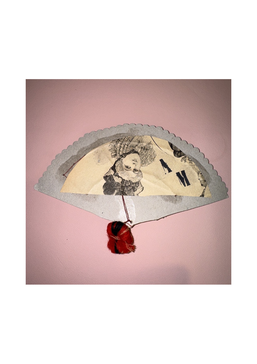 Made of cardboard imitating the shape of a fan.