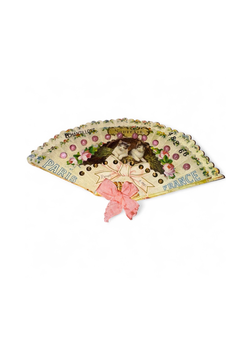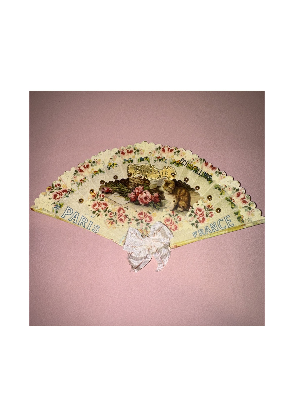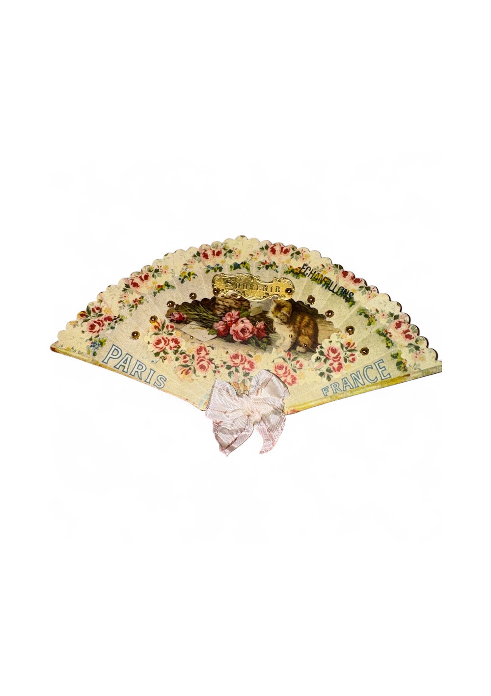 Made of cardboard imitating the shape of a fan.